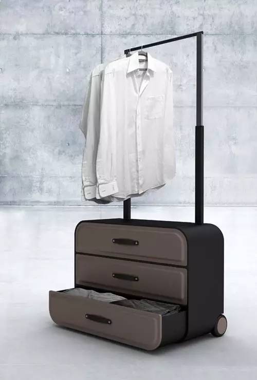 ▲抽屜旅行箱東莞膠水生產(chǎn)廠家:這款旅行箱由3個間隔的抽屜組成,每一層都可作為單獨的儲物空間,便于旅行箱物品的分類放置。將拉桿打開后,還能當(dāng)做晾衣架使用。