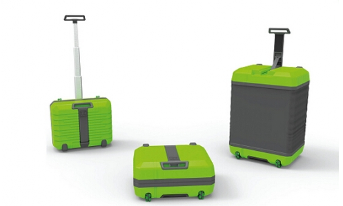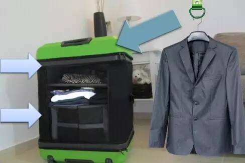 ▲FuguLuggage:設(shè)計者在FuguLuggage的可伸縮側(cè)壁內(nèi)藏了一個空氣抽氣裝置,輕輕一按,它就會從一個登機箱變成40×50×70cm的大旅行箱,內(nèi)里設(shè)計了十分方便的擱架系統(tǒng),并且已經(jīng)歷了相當(dāng)強度的重?fù)魶_撞實驗,完全可以輕易承受一個正常體重成年人的重量。