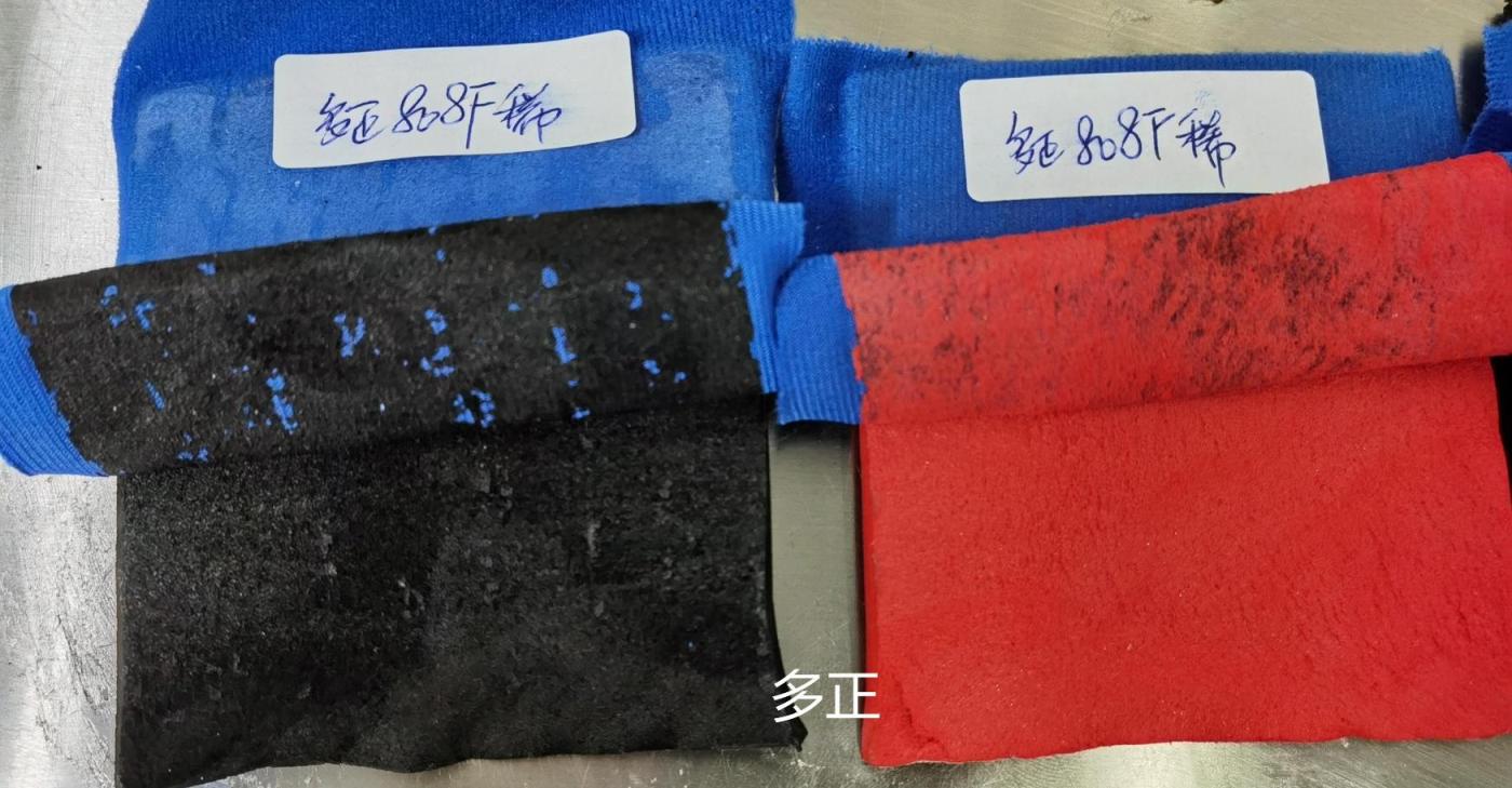多正樹脂研究院高分子膠粘劑從多正808F稀貼合膠與某力808F貼合膠中取樣對比測試,直觀呈現(xiàn)多正貼合膠的性能優(yōu)勢: