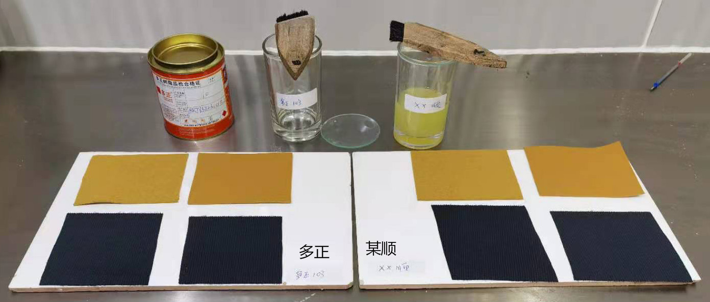 皮革膠粘劑案例PK丨多正樹(shù)脂103粉膠與××順103粉膠對(duì)比報(bào)告