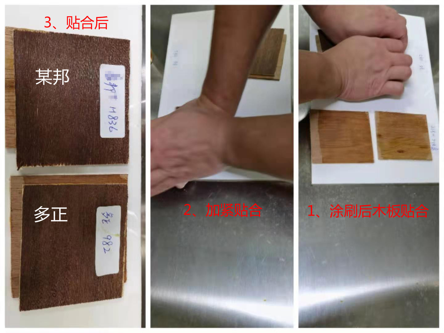 裝修用什么粘膠最環(huán)保?多正樹脂研究院為了讓用戶更直觀了解裝修膠的性能,選取市面上同類型的裝修膠某邦士H836作對(duì)比測(cè)試: